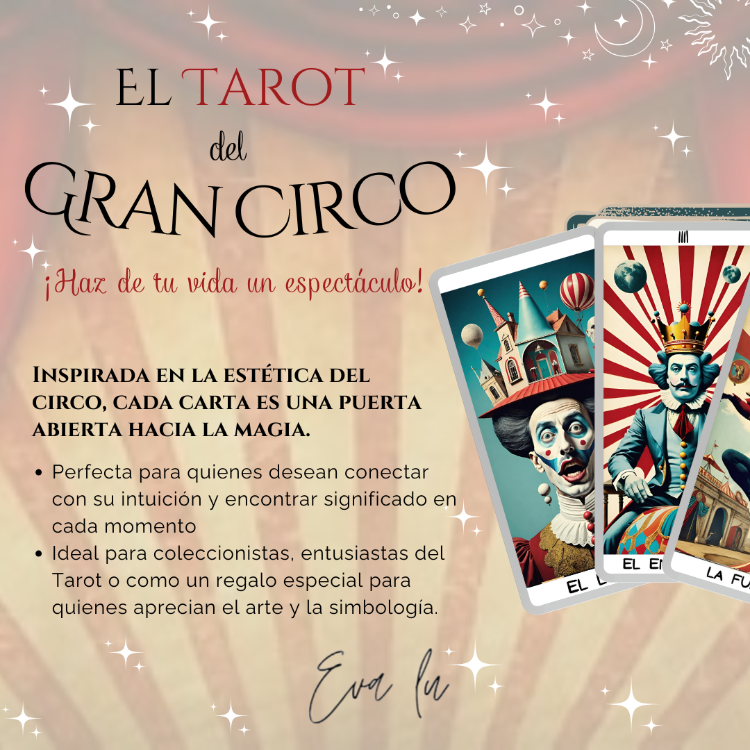 ✨ El Tarot del Gran Circo – Una baraja irreverente y onírica, donde los arquetipos juegan en la pista central de la vida.